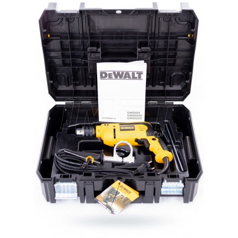 Wiertarka udarowa 701W 13mm, L/P, reg/obr DeWalt DWD024 + walizka systemowa TSTAK II z wkładką kalibracyjną