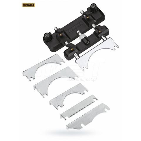 Nakładka adapter na szynę prowadzącą DeWALT DWS5021, DWS5022 DWS5023. Adapter spełnią funkcję łącznika frezarki z szyną prowadzącą, takie połączenie sprawia że możemy wykonywać proste równoległe cięcia do szyny. Nakładka jest kompatybilna z wieloma modelami frezarek DeWALT, w zestawie znajdziemy uchwyty mocujące urządzenie z adapterem do: DW625, DW626, DW615, DW621, DNP612 oraz D262004. Prosty przyrząd łatwy w obsłudze, natomiast w tak znaczący sposób ułatwi obróbkę drewna.