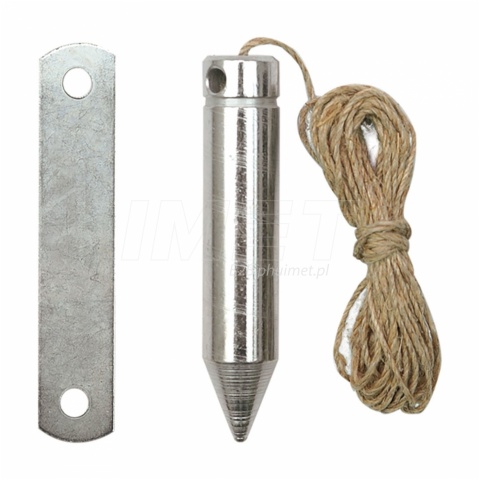 - Tradycyjny pion sznurkowy z ciężarkiem stalowym zawieszonym na lince oraz stalowym uchwytem z otworami montażowymi