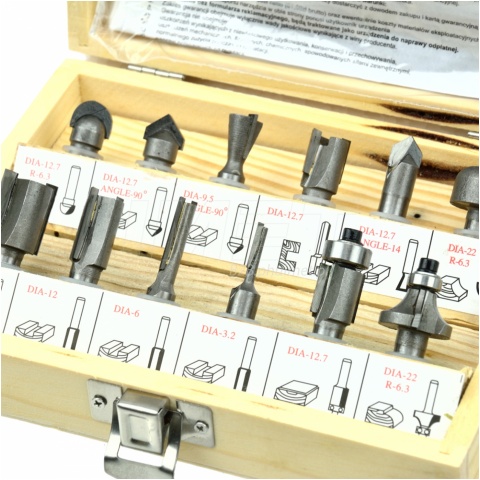 | Zestaw 12 frezów do drewna z uchwytem walcowym o średnicy 8mm. Ostrza ze stali szybkotnącej HSS pozwalają na użycie frezów do obróbki drewna litego, płyty wiórowej, MDF i innych materiałów drewnopochodnych. Zastosowane łożyska, zmniejszają opór toczenia, dlatego frezy idealnie nadają się do kształtowania obłych materiałów. W skład zestawu wchodzą różnego rodzaju frezy w wielu kształtach i rozmiarach, aby odpowiednio dobrać końcówkę wykańczającą. Całość znajduje się w estetycznym drewnianym pudełku, każdy frez ma swoje indywidualne miejsce które jest podpisane ,aby ułatwić dobór do aktualnych potrzeb. Frezy pasują do najbardziej popularnych frezarek dostępnych na rynku sieciowych i akumulatorowy takich jak: DeWALT, Makita, Hikoki / HiKOKI, Milwaukee oraz innych. Najważniejszym kryterium kompatybilności jest średnica trzpienia współpracującego urządzenia, która wynosi 8mm. Zestaw frezów 8mm: 1) frez DIA-12.7 R-6.3 2) frezDIA-12.7 ANGLE-90° 3) frezDIA-9.5 ANGLE-90° 4) frezDIA-12.7 5) frezDIA-12.7 ANGLE-14 6) frezDIA-22 R-6.3 7) frezDIA-16 8) frezDIA-12 9) frezDIA-6 10) frezDIA-3.2 11) frezDIA-12.7 z łożyskiem 12) frezDIA-22 R-6.3 |