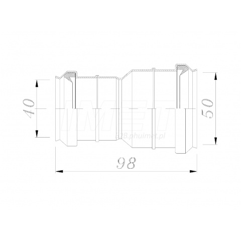 Redukcja zwężka kanalizacyjna dwukielichowa fi 50mm/ fi 40mm o długości 98mm biała 18141 z uszczelką