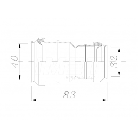 | Systemy przewodowe z tworzyw sztucznych do odprowadzania nieczystości i ścieków (o niskiej i wysokiej temperaturze) wewnątrz budynku. Dlugość złączki 83mm. Złączka redukcyjna łączy elementy kanalizacji o średnicy fi 40mm i fi 32mm. |