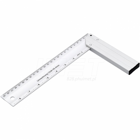 - Posiada stopkę i ramię tworzące kąt 45°, umożliwiające precyzyjne wyznaczanie kątów
