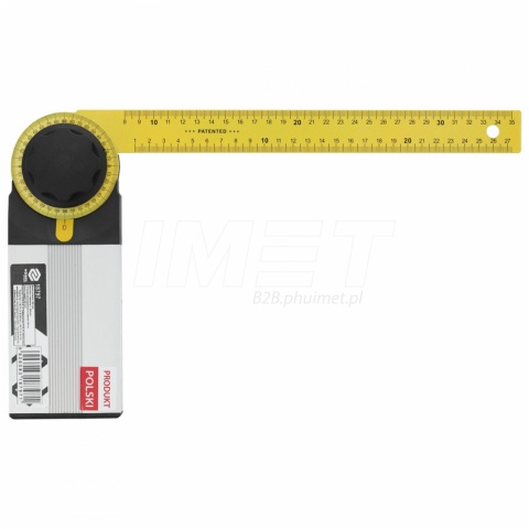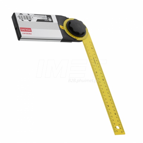 - Kątomierz nastawny o długości 350 mm, przeznaczony do pomiaru kątów oraz do wyznaczania linii i odległości