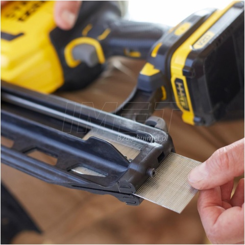 Akumulatorowa sztyfciarka Li-Ion 18V Stanley FATMAX V20 model SFMCN616D2K. Przeznaczona jest do prac wykończeniowych, współpracuje z gwoździami koletowanymi na klej w rozmiarze 1,6mm (16Ga) ułożonymi pod kątem 90°. Sztyfciarka posiada mechaniczny napęd zapewniający skuteczne funkcjonowanie, utrzymujące stałe parametry pracy w niskich temperaturach. Niższe koszty eksploatacji w porównaniu do gazowych, większa mobilność (brak przewodów pneumatycznych) w porównaniu do gwoździarek zasilanych powietrzem. Sztyfciarka Stanley FATMAX umożliwia beznarzędziowe usuwanie zaciętych gwoździ oraz beznarzędziową regulację głębokości wbijania. Elektronarzędzie doskonale sprawdzi się podczas np.: montażu filarów międzyokiennych, mebli, szafek, lamperii, sztukaterii i boazerii. Oświetlenie LED dodatkowo umożliwia prowadzenie działań gwoździarką w miejscach z ograniczonym dostępem do światła. Dostarczana z 2 akumulatorami 2 Ah, ładowarką, w solidnej walizce transportowej.