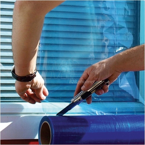 Samoprzylepna folia ochronna przeznaczona jest do czasowego zabezpieczania przed zabrudzeniami (pozostałości farby, tynków, gładzi oraz innych materiałów budowlanych) podczas przeprowadzanych prac remontowych, budowlanych i malarskich. Samoprzylepna folia posiadająca odporność na ścieranie, uszkodzenia mechaniczne i zarysowania. Doskonale sprawdza się do ochrony powierzchni gładkich takich jak szkło, blachy i podłogi. Folia łatwo się usuwa, nie pozostawia kleju. Folia może być stosowana do zabezpieczania wszelkiego rodzaju mebli, szafek oraz innych rzeczy chroniąc je przed uszkodzeniami podczas transportu. Posiada ona bardzo dużą odporność na działanie czynników atmosferycznych, a w szczególności działanie wody oraz promieni UV.