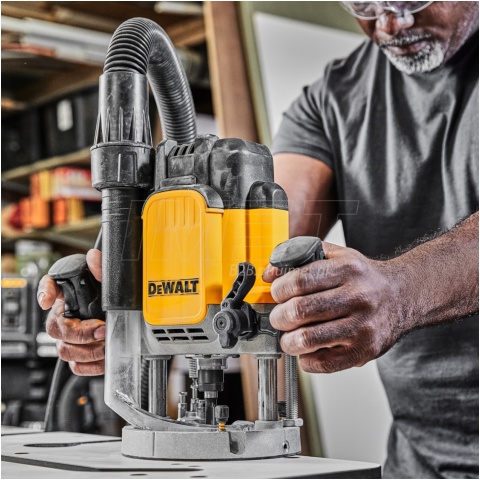 Frezarka górnowrzecionowa 12mm DeWALT DWE625 to profesjonalne narzędzie z mocnym silnikiem 2300W. Przy tak dużej mocy funkcja płynnego rozruchu zapobiega niekontrolowanemu przesunięciu urządzenia po materiale. Mocna frezarka DWE625 z płynną 7-stopniową regulacją obrotów w zakresie 9000-22000obr./min.pozwala na precyzyjną obróbkę szerokiej gamy materiałów (od drewna, przez aluminium, aż po tworzywo). Funkcjonalność i wygoda użytkowania dzięki efektywnemu systemowi odprowadzania wiórów oraz precyzyjnemu prowadzeniu i ustawieniom głębokości frezowania. Aby zwiększyć precyzję, frezarka jest w wyposażona w 2 diody LED, doświetlające miejsce robocze.