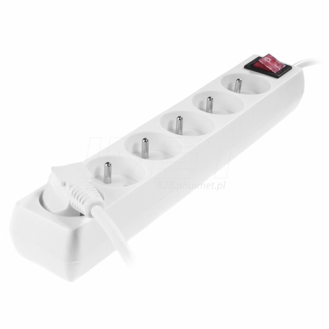 - Przedłużacz stały z sześciokrotnym gniazdem wtyczkowym i wyłącznikiem
