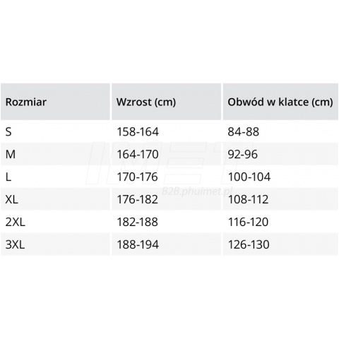 | Obwód klatki piersiowej: | 100 - 104 cm |