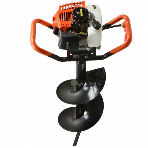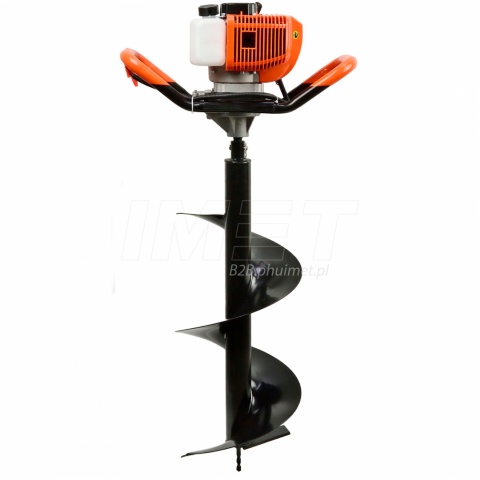 Spalinowa wiertnica glebowa marki JOHN GARDENER o mocy efektywnej (EPS) 5,2 KM w zestawie z wiertłami 10x80cm, 20x80cm, 30x80cm oraz przedłużką 50cm. Idealne urządzenie do prac w ogrodzie i na budowie. Pozwala w łatwy i wygodny sposób wywiercić otwory w ziemi pod sadzonki, słupki, przewody itp. Znajduje swoje zastosowanie również przy stawianiu płotów ogrodzeń a także altan i wielu innych czynności przy których potrzebne jest wykonanie rowów i otworów w glebie. Dzięki mocnemu silnikowi dwusuwowemu o pojemności 62 cm³ wiercenie jest szybkie i płynne, a system odcinający silnik w razie utraty kontroli nad urządzeniem zapewnia bezpieczeństwo pracy. Silnik działa na mieszance benzyny 95 oktanów i oleju do mieszanki dla silników dwusuwowych. Wiertła dołączone do zestawu zrobione są z wysokiej jakości stopów stali, dzięki czemu są bardzo wytrzymałe i odporne na uszkodzenia. Wysokiej jakości gaźnik i pozostałe elementy silnika sprawiają że odpalanie wiertnicy jest bezproblemowe za każdym razem gdy chcemy jej użyć.