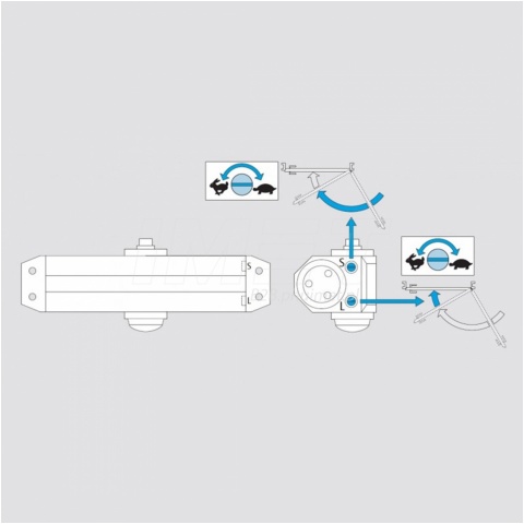 Samozamykacz nawierzchniowy z ramieniem standardowym. Stosowany w drzwiach prawych/lewych o szerokości skrzydła do 1100 mm i wadze do 80kg. Siła zamykania 2/3/4 zgodnie z normą EN 1154. Wyposażony w termozawory dzięki czemu odporny jest na niskie temperatury.