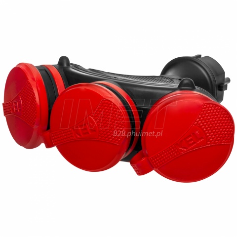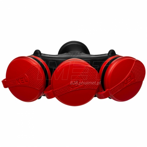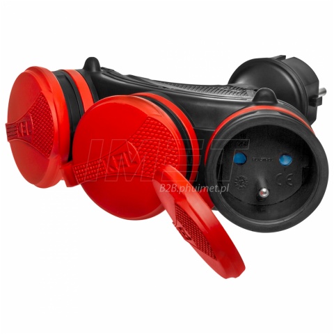 Potrójny rozgałęźnik R-X3/54 EXTREME z uziemieniem i klapkami IP54 czarno - czerwone 16A 250V PLASTROL W-01152