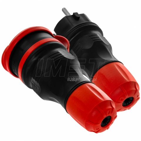 Extrem to seria gniazd i rozgałęźników przeznaczonych do pracy w najbardziej wymagających warunkach. Wysoki stopień bryzgoodporności zapewnia ochronę przed wnikaniem kurzu, brudu i piasku oraz strumieniem wody z dowolnego kierunku (IP54). Produkty są odporne na uderzenia, uszkodzenia mechaniczne oraz wytrzymałe na nacisk. Wysokiej jakości tworzywa techniczne użyte do wytworzenia produktów gwarantują im trwałość i niezawodność niezależnie od miejsca, w którym będą używane. Produkty Extrem znajdą szerokie zastosowanie w przemyśle, na budowach, statkach, w fabrykach, wszędzie tam, gdzie niezbędne jest solidne połączenie i bezpieczne złącze.