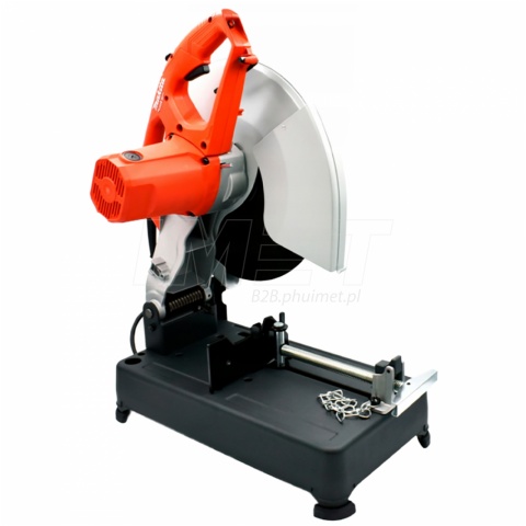 Stacjonarna przecinarka do metalu Makita M2401 posiada mocny silnik 2000W, napędzający tarczę 355mm z prędkością 3900obr./min. Urządzenie nie służy tylko do cięcia pod kątem prostym 90° ale również pod kątem w prawo i lewo do 45°. Bezpieczeństwo pracy poprawia osłona 2-stronna tarczy, która ogranicza wyrzut iskier w stronę użytkownika oraz zabezpieczy przed ewentualnym uszkodzeniem tarczy. Włącznik jest zabezpieczony dodatkowym przyciskiem przed przypadkowym włączeniem maszyny. Ergonomię pracy poprawia szybkomocujące imadło. Nie musimy już długo kręcić pokrętłem, wystarczy przesunąć po wcześniejszym odciągnięciu zabezpieczenia. Następnym krokiem jest już ręczne ściśnięcie materiału z odpowiednią siłą, aby materiał pozostał bez ruchu podczas cięcia. Zastosowana blokada wrzeciona znacząco ułatwia wymianę tarczy.