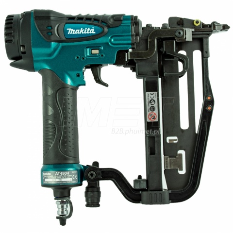 Zszywacz ręczny to jedno z tych narzędzi, które na dłuższą metę potrafi przyprawić o sporo problemów w wyniku urazów i nadwyrężeń nadgarstka oraz dłoni. Wbrew pozorom, do jego obsługi potrzeba całkiem sporo energii i to często przez długi czas. Pneumatyczny zszywacz Makita AT450H to aż 80% mniej wysiłku w porównaniu z klasycznymi zszywaczami. Taker pneumatyczny Makita pozwala przyspieszyć prace w meblarstwie, stolarstwie, dekarstwie oraz tapicerstwie. Obudowa zszywacza AT450H została stworzona z myślą o jak najlepszej ergonomii podczas długotrwałej pracy, a zintegrowany hak ułatwia powieszenie narzędzia w przestrzeni roboczej lub przy pasku.