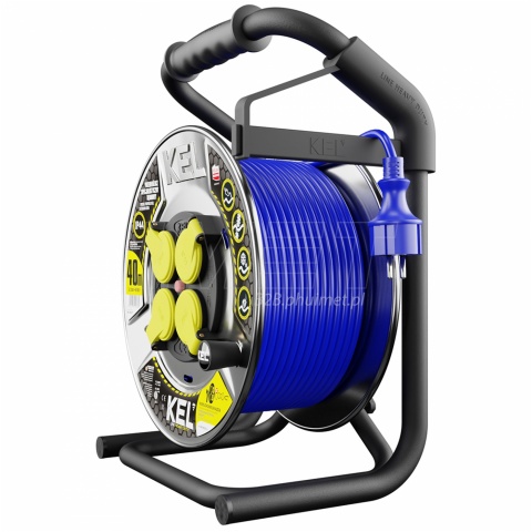 Przedłużacz bębnowy specjalistyczny HEAVY LINE 40m 16A 230V 3x1,5mm², bęben metalowy, 4 stałe gniazda, IP44 KEL W-99271