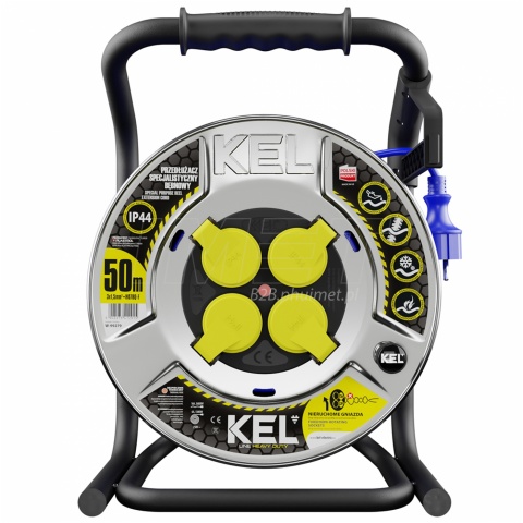 Przedłużacz bębnowy specjalistyczny HEAVY LINE 50m 16A 230V 3x1,5mm², bęben metalowy, 4 stałe gniazda, IP44 KEL W-99279