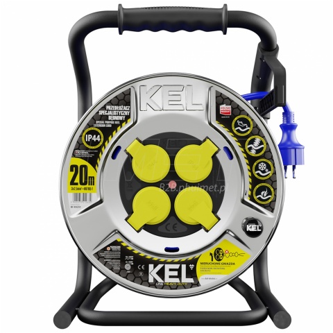 Przedłużacz bębnowy specjalistyczny HEAVY LINE 20m 16A 230V 3x2,5mm², bęben metalowy, 4 stałe gniazda, IP44 KEL W-99251