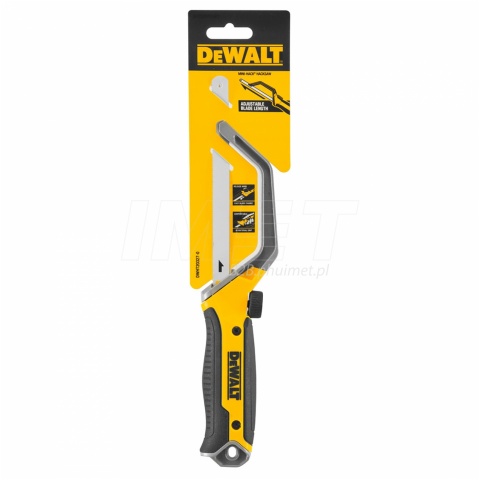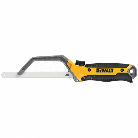Poręczna mini piła do metalu DeWALT DWHT20327-0 posiada specjalny uchwyt kompatybilny z brzeszczotami do ramki. Wymiana brzeszczotu odbywa się szybko, przy pomocy śruby zaciskowej. Specjalna konstrukcja uchwytu umożliwia regulację długości, brzeszczot do ramki (częściowo) chowany w rączce. Rękojeść pokryta gumą zapewnia pewny i wygodny chwyt.