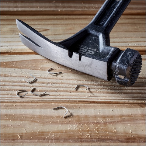 Wyposażony w 3 boczne wyciągacze do gwoździ w dwóch rozmiarach oraz zszywek