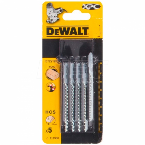 Brzeszczot do wyrzynarki DeWALT DT2216 XPC 2,0-82 T119B0 do drewna, płyt wiórowych i stolarskich, laminatów, tworzyw sztucznych i drewna z gwoździami, typ T.