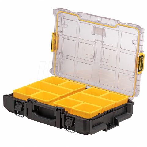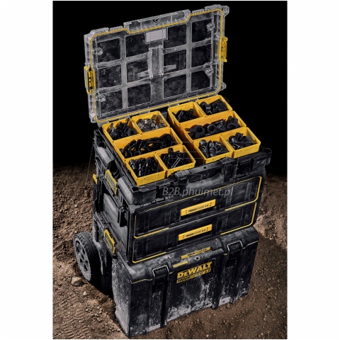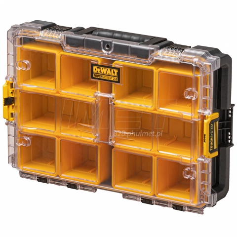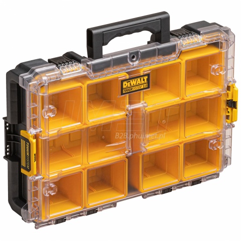 Skrzynia z organizerami systemu ToughSystem 2.0 Dewalt DWST83394-1 to doskonałe rozwiązanie dla osób poszukujących niezawodnego i wytrzymałego narzędzia do przechowywania i transportu akcesoriów i narzędzi. Skrzynia ta posiada standardową szerokość skrzyni ToughSystem 2.0, dzięki czemu jest kompatybilna z całą serią skrzyń narzędziowych tej serii. Organizer posiada 8 małych i 2 duże łatwo wyjmowane, głębokie pojemniki, które umożliwiają dopasowanie przestrzeni w skrzyni do potrzeb użytkownika. Pojemniki są szczelnie zabezpieczone przed przemieszczaniem się, dzięki wyjątkowo trwałej i przeźroczystej pokrywie z poliwęglanu. Specjalne uszczelki zapewniają wodoszczelność i pyłoszczelność (IP65), co gwarantuje, że zawartość skrzyni pozostanie sucha i czysta, nawet w trudnych warunkach. Solidne zawiasy z metalową sprzączką gwarantują pewne zamknięcie i możliwość obsługi jedną ręką. Organizer został wykonany z wysokiej jakości, grubego i mocnego tworzywa sztucznego, co gwarantuje wytrzymałość i odporność na uszkodzenia mechaniczne i warunki atmosferyczne. Skrzynia z organizerami systemu ToughSystem 2.0 Dewalt DWST83394-1 to doskonałe narzędzie dla każdego fachowca i hobbysty, który potrzebuje niezawodnego, wytrzymałego i praktycznego rozwiązania do przechowywania i transportu swojego sprzętu.