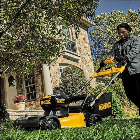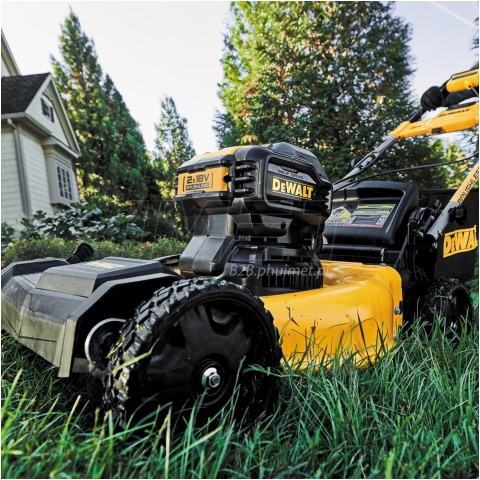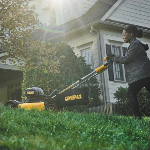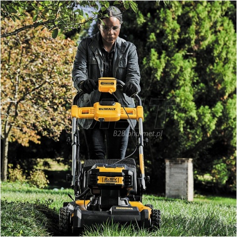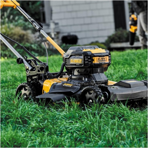 Akumulatorowa kosiarka do trawy z napędem DeWALT DCMWSP564 przeznaczona jest do trawników o powierzchni do 1500m2. Zastosowany silnik bezszczotkowy pracujący na napięciu 36V zapewnia wysoką moc i wydajność. Do uruchomienia kosiarki potrzebujemy 2 akumulatorów Li-Ion 18V XR, FlexVolt lub PowerStack. Prezentowany model DeWALT DCMWSP564 posiada wbudowany napęd w połączeniu z dużymi kołami, ułatwiając pielęgnację terenów zielonych. Urządzenie posiada 5-stopniową regulację wysokości koszenia w zakresie 32-95mm. Aby zapewnisz wszechstronność urządzenia, amerykański producent wyposażył kosiarkę w 3 tryby pracy: zbieranie trawy do kosza o pojemności 55L, wyrzut boczny oraz funkcję mulczowania. W celu zwiększenia bezpieczeństwa urządzenie posiada włącznik z zabezpieczeniem przed przypadkowym uruchomieniem oraz kluczyk aktywujący przepływ napięcia. Wersja N BODY- bez akumulatorów i ładowarki w zestawie, opakowanie kartonowe.