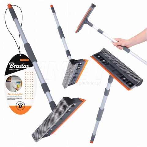 Ściągaczka do mycia szyb Bradas ES2110 to praktyczne narzędzie przeznaczone do czyszczenia okien, szyb oraz innych gładkich powierzchni. Wyposażona jest w teleskopowy, lekki aluminiowy trzonek o regulowanej długości od 60 do 95 cm, który umożliwia wygodne mycie także wyżej położonych miejsc bez potrzeby używania drabiny. Głowica o szerokości 8 cali (ok. 20 cm) łączy gąbkę do mycia z gumową ściągaczką, dzięki czemu pozwala jednocześnie usuwać zabrudzenia i skutecznie zbierać wodę bez pozostawiania smug. Solidna konstrukcja oraz ergonomiczny uchwyt zapewniają komfort użytkowania, a uniwersalne zastosowanie sprawia, że produkt idealnie sprawdzi się zarówno w domu, jak i przy myciu szyb samochodowych czy witryn.