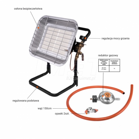 Promiennik gazowy Bradas PG-009C 3 - 4,5 kW zuż.gazu 220-330 g/h + stojak