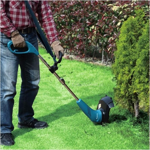 Elektryczna podkaszarka Makita DUR181 wyposażona w silnik o mocy 450W, jedno żyłkowa głowica tnącą, o szerokości cięcia 30cm. Zastosowana rura teleskopowa z możliwością regulacją długości w zakresie około 24cm, ułatwia dostosowanie kosy do naszych preferencji. Obrotowa głowica o 180° ułatwia cięcie przy krawędziach np. chodniku. Lekka i kompaktowa konstrukcja posiada uchwyt typu pętla, poprawiając ergonomię. Blokada wyłącznika wpływa na poprawie bezpieczeństwa.