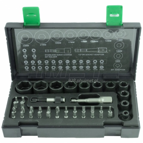 Zestaw bitów i nasadek 752500 Hikoki idealnie sprawdzi się podczas prac montażowych. Przeznaczony do zakrętarek czy kluczy udarowych. W opakowaniu znajduje się 41 elementów. Szeroki wachlarz asesorii znajdzie swoje uznanie w rękach budowlańców, mechaników czy cieśli. Całość znajduje się w walizce z tworzywa sztucznego ułatwiający organizację i przechowywanie.