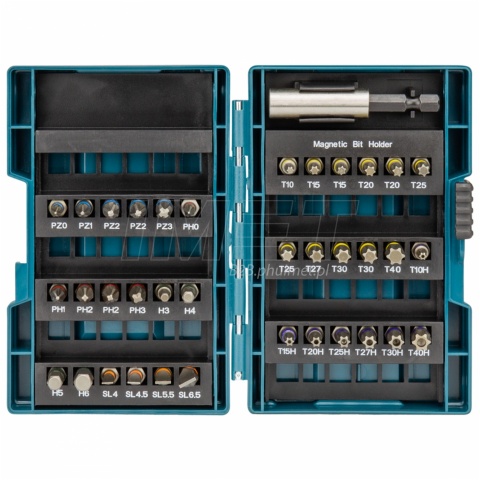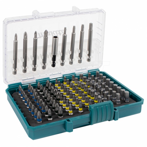 Zestaw akcesoriów Makita B-53908 to komplet różnych końcówek, wierteł i uchwytów służących do wkręcania i wiercenia w drewnie, metalu i betonie. W zestawie znajdziemy różne rodzaje końcówek (bitów) o różnych kształtach i rozmiarach, takie jak płaskie, krzyżowe, Torx, imbusowe itp. Różnorodność bitów pozwala na ich wykorzystanie przy różnych pracach w domu, warsztacie lub na budowie. Dodatkowo w zestawie znajdziemy zestaw wierteł do metalu, drewna i betonu. 62-częściowy zestaw końcówek, wierteł i uchwytów dostarczany jest w walizce MAKPAC.
