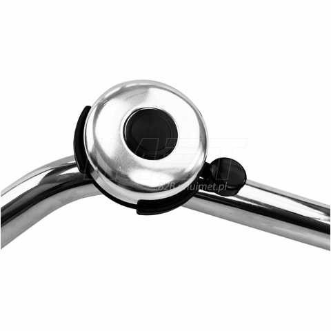 Dzwonek rowerowy posiada uchwyt o średnicy 20 mm wykonany z tworzywa sztucznego, co zapewnia pewne i wygodne trzymanie. Korpus o średnicy 52mm jest wykonany z metalu, co zapewnia wytrzymałość i odporność na warunki atmosferyczne oraz uszkodzenia mechaniczne. Dzwonek wydaje dźwięk o dużej głośności, co pozwala na skuteczne ostrzeganie innych użytkowników drogi, w szczególności pieszych i kierowców samochodów. Dźwięk jest klarowny i wyraźny, co umożliwia natychmiastowe zareagowanie na ostrzeżenie.
