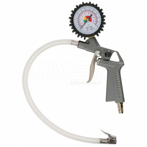 Pistolet do pompowania z manometrem - narzędzie to służy do pompowania opon oraz innych elementów pneumatycznych. Wyposażone jest w manometr, który umożliwia kontrolę ciśnienia.