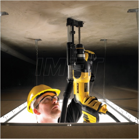 Adapter do odsysania teleskopowy D25301D Dewalt to narzędzie przeznaczone do bezpyłowego wiercenia o średnicach do 16 mm. Jego system szybkozaciskowy umożliwia łatwy montaż i demontaż, co pozwala na szybkie przełączanie między różnymi zastosowaniami. Adapter jest bardzo kompaktowy i lekki, co zapewnia dobrą widoczność miejsca pracy oraz minimalizuje zmęczenie operatora. Wąż ssący o długości 150 cm pozwala na daleki zasięg wiercenia, co zwiększa jego funkcjonalność. Uchwyt z rękojeścią boczną zapewnia uniwersalność zastosowań, dzięki czemu adapter może być stosowany z różnymi typami sieciowych i akumulatorowych młotowiertarek SDS-Plus DEWALT, takimi jak D25013, D25033, D25113, D25114, D25123, D25124, D25133, D25134, D25144, D25303, D25304, D25313, D25314, D25323, D25324, D25263, D25213.