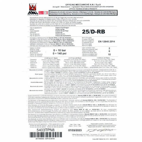 Certyfikowany pistolet do pompowania kół z legalizacją. Każdy pistolet posiada załączony certyfikat kalibracji. Może być wykorzystywany np. przez stacje kontroli pojazdów.