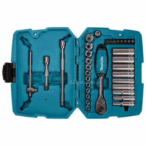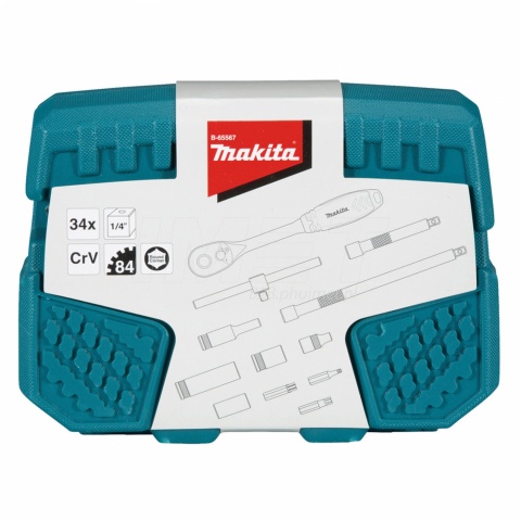 Zestaw 34 sztuk nasadek i bitów + klucz grzechotka 1/4" walizka Makita B-65567