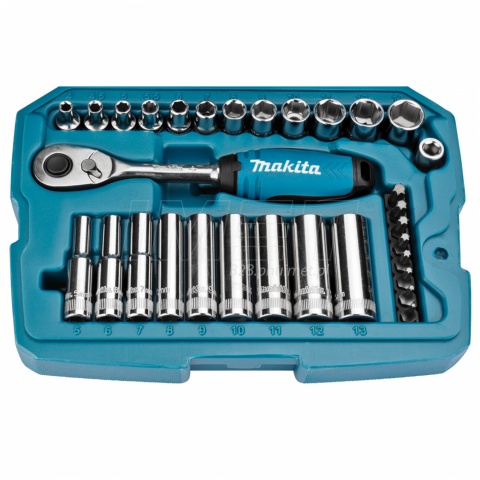 Zestaw 34 sztuk nasadek i bitów + klucz grzechotka 1/4" Makita B-65567
