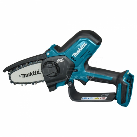| Pilarka łańcuchowa akumulatorowa 18V 100mm MAKITA DUC101 jest narzędziem przeznaczonym do przycinania gałęzi w sadach i ogrodach. Ma napięcie zasilania 18V i jest zasilana akumulatorami systemu LXT. Narzędzie jest łatwe w użyciu, lekkie i kompaktowe, co ułatwia manewrowanie i obsługę. Pilarka posiada bezszczotkowy silnik prądu stałego (BLDC), który zapewnia większą wydajność, niższe zużycie energii i dłuższą żywotność w porównaniu z tradycyjnymi silnikami szczotkowymi. Dodatkowo, narzędzie wykorzystuje technologię XPT (Extreme Protection Technology), co oznacza, że jest bardziej odporne na pył i wilgoć, co zwiększa trwałość i niezawodność w różnych warunkach. Pilarka jest wyposażona w ruchomą osłonę z górnej strony prowadnicy, która stopniowo otwiera się podczas zagłębiania piły w gałąź. Dzięki temu zwiększa się bezpieczeństwo pracy. Narzędzie ma także okienko, które pozwala na kontrolę poziomu oleju w zbiorniku służącym do smarowania łańcucha. Dodatkowo, pilarka posiada hamulec elektryczny, który przyczynia się do maksymalnej wydajności i bezpieczeństwa pracy. Dźwignia blokady włącznika jest łatwo dostępna z obu stron narzędzia, co ułatwia obsługę. Warto również wspomnieć, że narzędzie automatycznie smaruje łańcuch, co zapewnia jego odpowiednie działanie i wydłuża jego żywotność. Ponadto, wymiana i naciąg łańcucha odbywają się bez użycia narzędzi, co jest wygodne i oszczędza czas. Wersja Z BODY- bez akumulatorów i ładowarki w zestawie, opakowanie kartonowe.