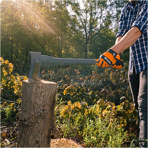 Siekiera uniwersalna BRADAS KT-SF2100 to narzędzie o wzmocnionej konstrukcji, które zostało zaprojektowane z myślą o zapewnieniu maksymalnej wydajności i bezpieczeństwa użytkowania. Trzonek siekiery wykonany jest z tworzywa FIBERGLASS, które zostało wzmocnione włóknem szklanym, co zapewnia doskonałą wytrzymałość i odporność na uszkodzenia mechaniczne. Ostrze siekiery zostało wykonane ze stali hartowanej, dzięki czemu jest ono bardzo ostre i wytrzymałe. Antypoślizgowa powierzchnia rączki TPR zapewnia pewny i wygodny chwyt, nawet w mokrych lub wilgotnych warunkach. Siekiera BRADAS KT-SF2150 posiada certyfikat bezpieczeństwa TÜV GS, co oznacza, że spełnia najwyższe standardy bezpieczeństwa w Unii Europejskiej. Waga głowicy siekiery wynosi 1000g, co czyni ją idealną do użytku w różnych warunkach i do różnych zadań, takich jak wycinanie drewna, przycinanie gałęzi czy rozłupywanie kłód.