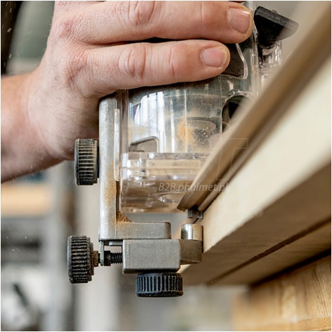 Frezarka krawędziowa 6mm 500W METABO FM 500-6 (601741000) to lekka, kompaktowa frezarka idealna do frezowania profilowego jedną ręką, trymowania i frezowania rowków. Jej mocny silnik o mocy 500W umożliwia szybkie frezowanie drewna i materiałów drewnopodobnych. W zestawie znajduje się wiele akcesoriów, takich jak ogranicznik wzdłużny, kołnierz kopiujący i prowadnica rolkowa, które pozwalają na precyzyjne i wszechstronne frezowanie. Dzięki nim można kontrolować kierunek frezowania oraz zachować równomierność obróbki. Frezarka posiada precyzyjną i płynną regulację głębokości obróbki, co umożliwia dostosowanie jej do różnych zadań i materiałów. System mocowania silnika na listwie zębatej zapewnia stabilność i precyzję podczas pracy. Przezroczysta podstawa frezarki zapewnia optymalną widoczność zarówno freza, jak i obrabianego przedmiotu, co ułatwia precyzyjne prowadzenie i kontrolę frezowania. Dodatkowym elementem bezpieczeństwa jest zabezpieczenie przed ponownym uruchomieniem, które zapobiega niezamierzonemu włączeniu frezarki po przywróceniu zasilania. Ponadto, frezarka posiada ochronę silnika, która automatycznie wyłącza urządzenie w przypadku nadmiernego zużycia szczotek węglowych, co chroni silnik przed uszkodzeniem.