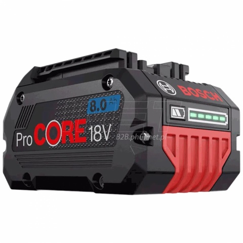| Akumulator GBA 18V 8,0Ah ProCore BOSCH to niezawodne źródło zasilania, zapewniający moc porównywalną z mocą narzędzia sieciowego 1800W. Zastosowana w nim technologia ogniw nowej generacji w połączeni z inteligentnym systemem zarządzania akumulatorem zapewnia 87% więcej mocy w porównaniu z konwencjonalnymi akumulatorami.