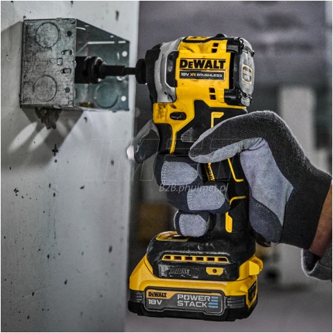 Subkompaktowa zakrętarka udarowa DeWALT DCF850 z silnikiem bezszczotkowym o maksymalnym momencie obrotowym wynoszącym, aż 206,2Nm. Dzięki zastosowaniu najnowszych technologii inżynierom z DeWALT udało się zmieścić tak wysoki moment obrotowy w korpusie o długości zaledwie 101mm. Niewielkie wymiary zakrętarki pozwalają na pracę w ciasnych przestrzeniach, w zacienionym miejscu obszar roboczy oświetli nam pierścień świetlny, składający się z 3 diod LED. Najnowszej generacji silnik bezszczotkowy ma moc na poziomie 475W, zużywając znacznie mniej energii elektrycznej niż silniki szczotkowe. W celu dobrania odpowiednich parametrów pracy zakrętarka jest wyposażona w 3 biegi. 1 bieg odpowiada za bezpieczne dokręcanie wkrętów i śrub, zmniejszając ryzyko uszkodzenia materiału.
