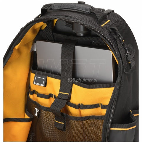 Plecak narzędziowy DeWALT PRO DWST60101-1 to praktyczny organizer dla profesjonalistów, cechujący się solidnością i funkcjonalnością. Wykonany z wytrzymałego materiału 1680D oraz zabezpieczony przed wilgocią dzięki dnie z tworzywa. Zapewniająca ochronę przed wilgocią i zanieczyszczeniami komora o klasie odporności IP54. Design nawiązujący do barw DeWALT dodaje profesjonalnego wyglądu. Posiada 46 kieszeni, uchwytów i zaczepów, idealnych do przechowywania elektronarzędzi, akumulatorów oraz drobnych elementów. Dodatkowo wyposażony w przegródki na butelki z wodą. Waży zaledwie 2,8 kg, co sprawia, że jest lekki i praktyczny. Wymiary 35 x 24 x 54 cm zapewniają mobilność i użyteczność zarówno w pracy, jak i w domu. Wyposażony w kółka i teleskopowy uchwyt, umożliwiający transport jak walizkę podróżną, co jest szczególnie wygodne przy ciężkich narzędziach.