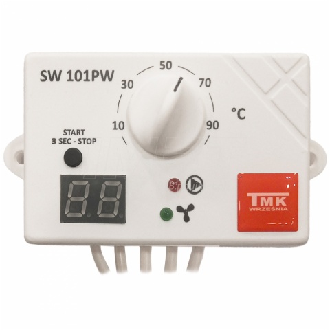 Sterownik pieca TMK WRZEŚNIA SW101PW został stworzony do automatycznego zarządzania pracą wentylatora i pompy obiegowej, współpracujących z kotłem centralnego ogrzewania. Odpowiada za utrzymanie ustalonej temperatury oraz zapewnia spalanie zgromadzonych w kotle gazów. Po wygaśnięciu kotła, zarówno dmuchawa, jak i pompa automatycznie się wyłączają, co skutkuje zmniejszeniem zużycia energii. Dodatkowo, sterownik jest wyposażony w funkcję „anty-stop”, zapobiegającą potencjalnemu tzw. zastaniu się pompy spowodowanemu osadzaniem się kamienia na jej łożyskach. Posiada także dodatkowe zabezpieczenie w postaci wyłącznika termicznego, które ogranicza ryzyko przegrzania pieca.
