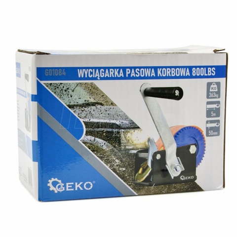 Wyciągarka korbowa pasowa Geko G01084 363kg 800lbs 5 m