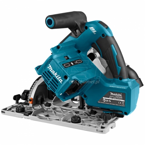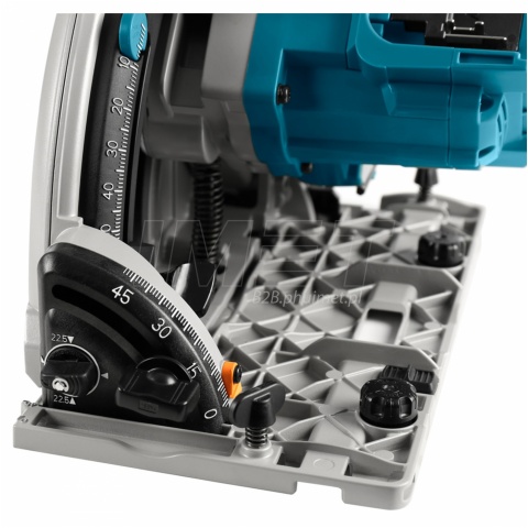 Akumulatorowa zagłębiarka Makita DSP600 jest zasilana dwoma akumulatorami Li-Ion 18V LXT, co daje łączne napięcie 36V. Dzięki temu rozwiązaniu, urządzenie osiąga zbliżone parametry do swojego odpowiednika sieciowego SP6000. Wyposażona w silnik bezszczotkowy, zagłębiarka zapewnia dłuższy czas pracy na jednym naładowaniu akumulatora, jednocześnie zmniejszając rozmiar i zwiększając wydajność w porównaniu z tradycyjnym silnikiem szczotkowym. Funkcja ADT (Automatic Torque Drive Technology) automatycznie dostosowuje prędkość oraz moment obrotowy podczas pracy, co zwiększa efektywność urządzenia. Elektroniczna regulacja prędkości obrotowej w zakresie 2500 - 6300 obr./min za pomocą pokrętła umożliwia dostosowanie parametrów do rodzaju obrabianego materiału. Dodatkowo, zagłębiarka posiada łagodny rozruch oraz hamulec tarczy, co podnosi poziom bezpieczeństwa użytkowania. Zabezpieczenia przed przegrzaniem, przeciążeniem oraz nadmiernym rozładowaniem akumulatora sprawiają, że narzędzie jest nie tylko efektywne, ale także trwałe. Nowoczesny silnik napędza tarczę o średnicy 165mm, umożliwiając maksymalną głębokość cięcia wynoszącą 56mm, przy kącie 0° / 90°. Pod kątem 45° osiąga 40mm, a przy kącie 48° - 38mm. Beznarzędziowa regulacja głębokości i kąta cięcia korzystnie wpływa na ergonomię użytkowania, umożliwiając łatwe i precyzyjne dostosowanie narzędzia do różnych zadań. Podstawa zagłębiarki, wykonana z odlewu z magnezu, została specjalnie dostosowana do współpracy z szyną prowadzącą, co gwarantuje precyzyjne cięcia. Warto zauważyć, że maksymalna głębokość cięcia po zastosowaniu szyny zmniejsza się o 4mm. Ergonomiczna konstrukcja narzędzia umożliwia cięcie z odległości 18mm od ściany, co stanowi istotną funkcję zwłaszcza w trudno dostępnych miejscach. To cecha, która podnosi wszechstronność narzędzia i sprawia, że jest ono bardziej uniwersalne w zastosowaniach praktycznych. Urządzenie posiada także możliwość podłączenia odkurzacza, eliminując zapylenie w przestrzeni roboczej.
