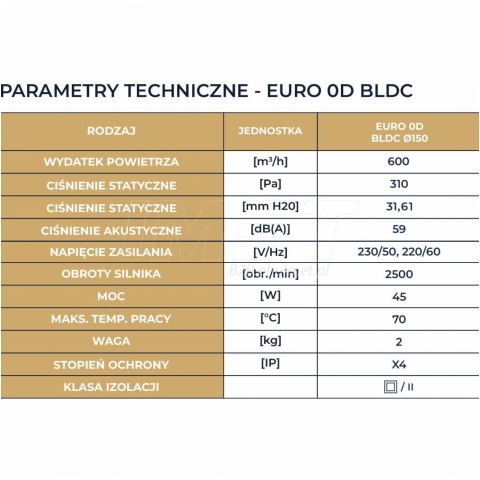Wentylator kanałowy - promieniowy DOSPEL 007-9270 EURO - 0 fi-150 mm TESLA-BLDC