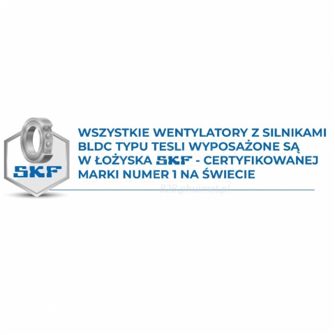 Wyposażony w certyfikowane łożyska od wiodącego na świecie producenta - SKF, co zapewnia cichą i wydajną pracę.