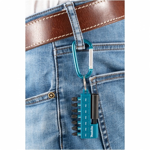 Zestaw 8 udarowych akcesoriów wkrętarskich Makita E-11994 z serii IMPACT BLACK zawiera bity o długości 25mm, takie jak Philips i Pozidriv, umożliwiające dopasowanie końcówki do gniazda wkręta. Do zestawu dołączony jest również 1 uchwyt magnetyczny do bitów o rozmiarze 1/4'', co umożliwia szybką wymianę i zapobiega przypadkowemu wypadaniu. Cały zestaw jest umieszczony w specjalnym blistrze z karabińczykiem, który umożliwia łatwe mocowanie, na przykład do paska, szlufki spodni lub innego miejsca, co pozwala mieć bity zawsze pod ręką.
